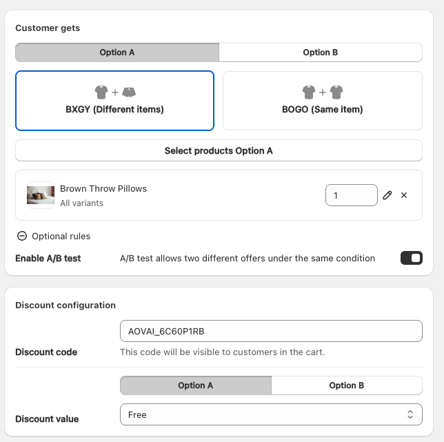 * This will allow you to configure **Option A** and **Option B** rewards under the same condition.