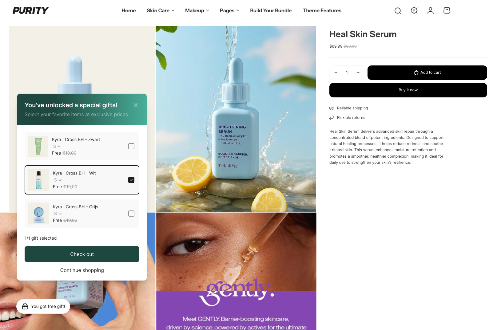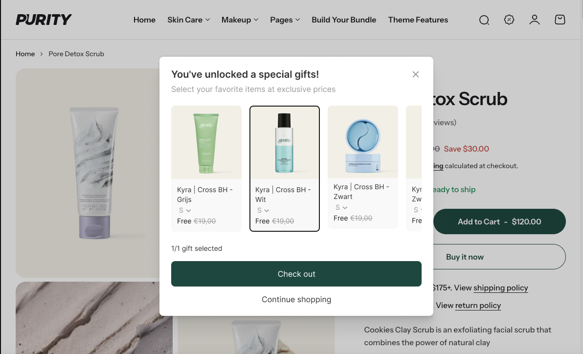 If you set a gift product with a **quantity of 2 or more**, by default, customers would only be able to choose **one variant**, and both gift items would be the same (e.g., 2 red shirts, size M).