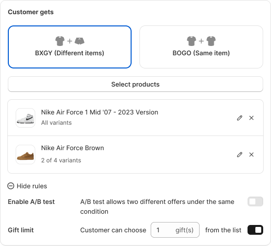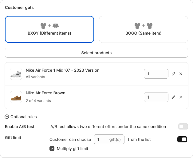 With the AOV Free Gift app, you can easily create and manage BXGY campaigns that convert — no coding required!