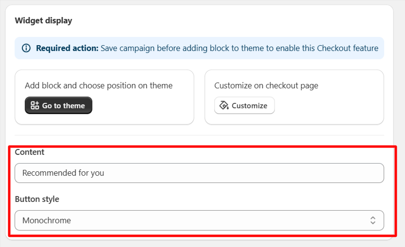 * You must save campaign successfully to see and add AOV block to theme