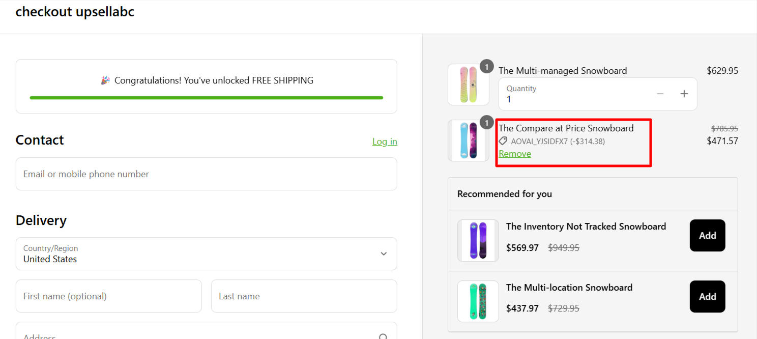 → Upsell product shows in order summary before payment