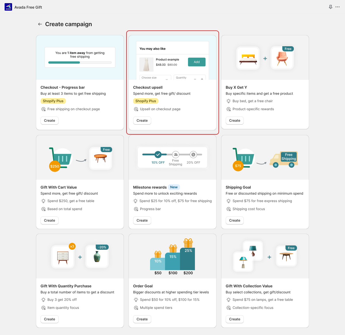 * Go to **AOV Free Gift app → Campaign list → Create new campaign**
