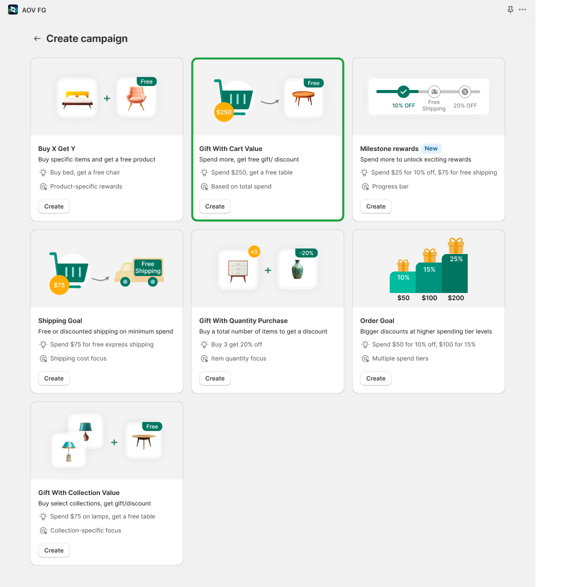 * **Minimum Cart Value:** Choose the amount of money your customers need to spend to unlock the offer.